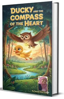 Ducky and the Compass of the Heart Author: Fauziah Binti Desa Target Audience: 5-7 years Little Ducky the duckling gets lost deep in the woods after chasing a butterfly. A kind owl named Wisey appears